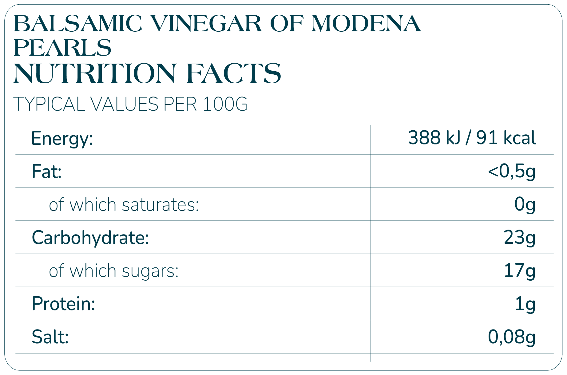 Nutritional properties SPHERIKA, balsamic vinegar of Modena spheres 55g