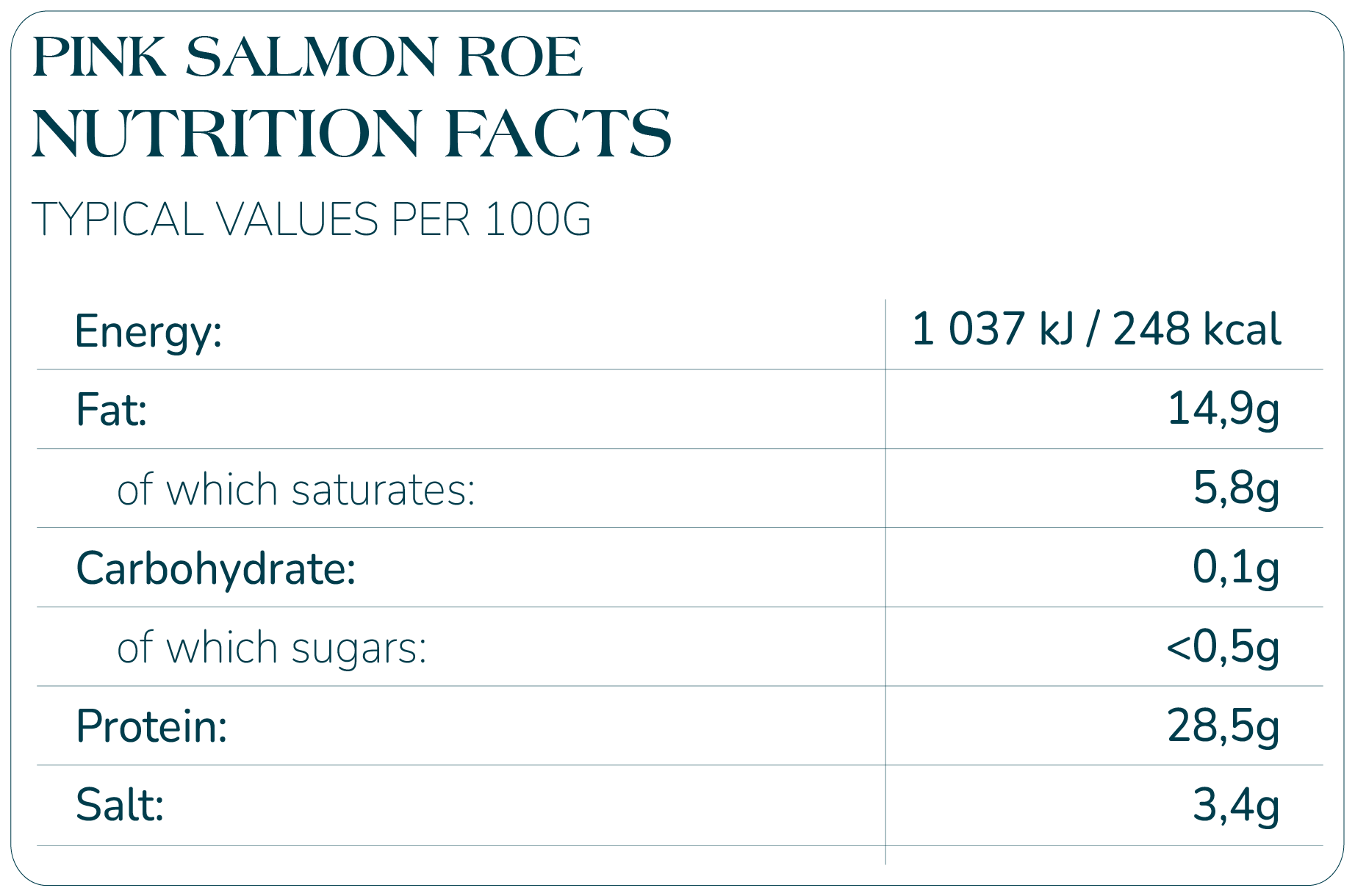 Nutritional properties SPHERIKA, salmon roe (PINK)
