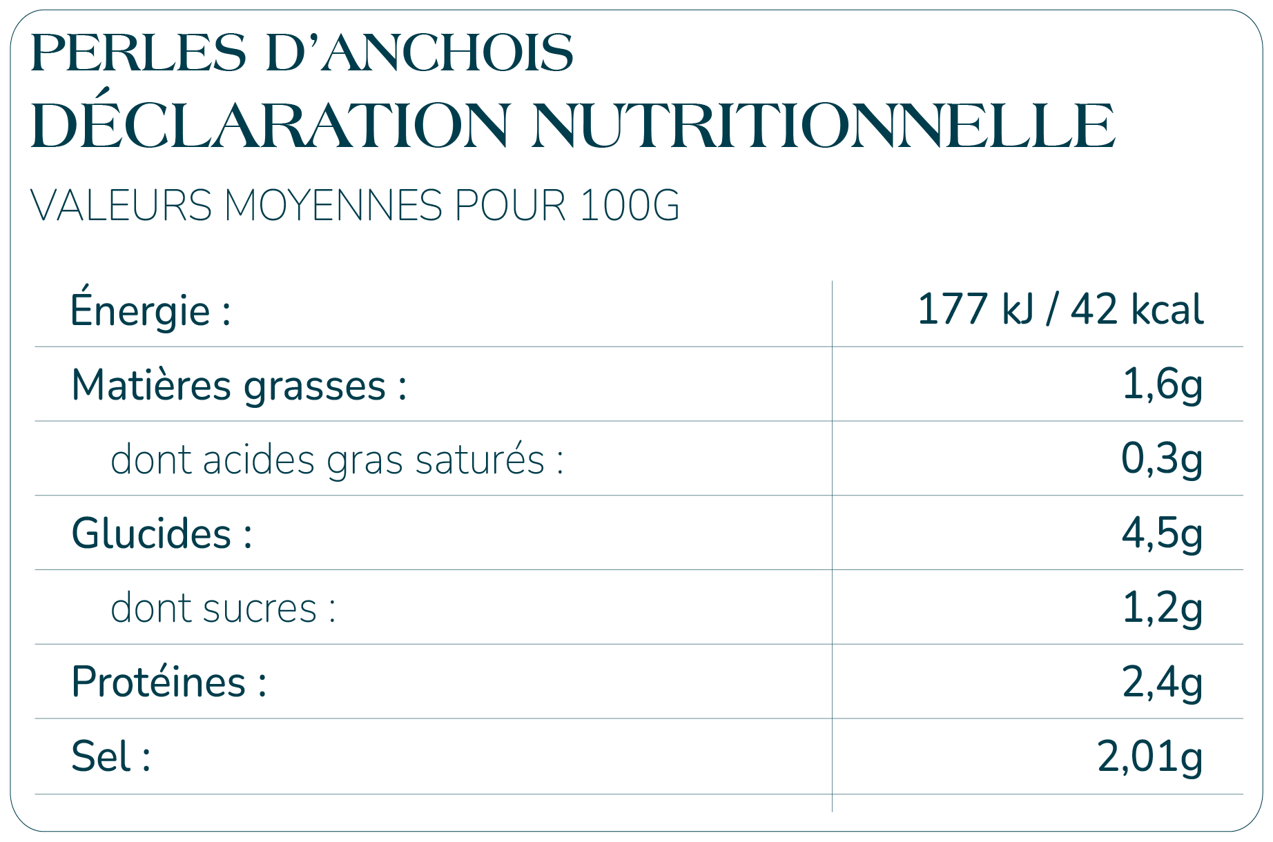 Propriétés nutritionnelles ANCHOVIAR, sphères d'anchois 55g