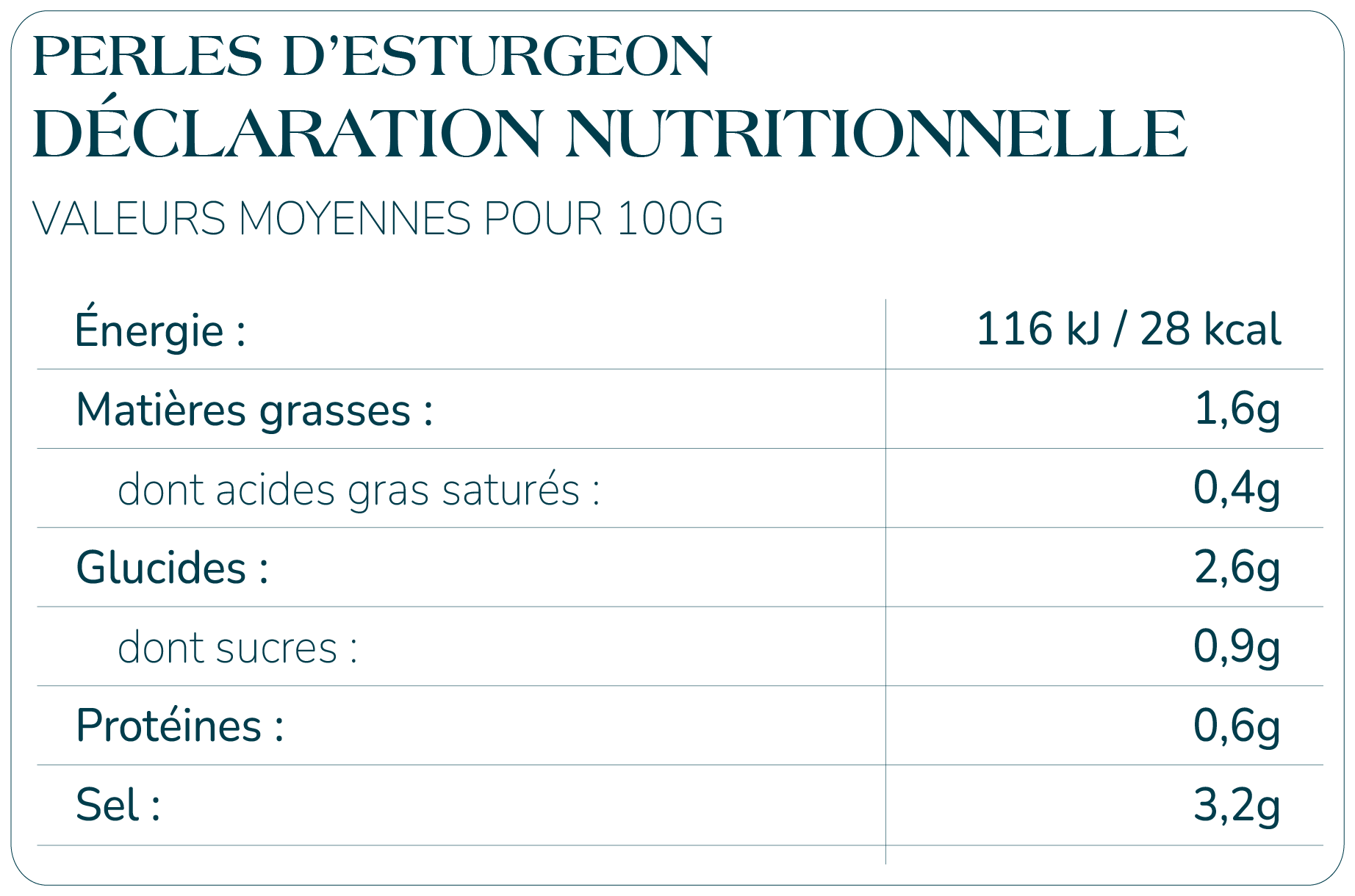 Propriétés nutritionnelles SPHERIKA, sphères d'esturgeon 100g