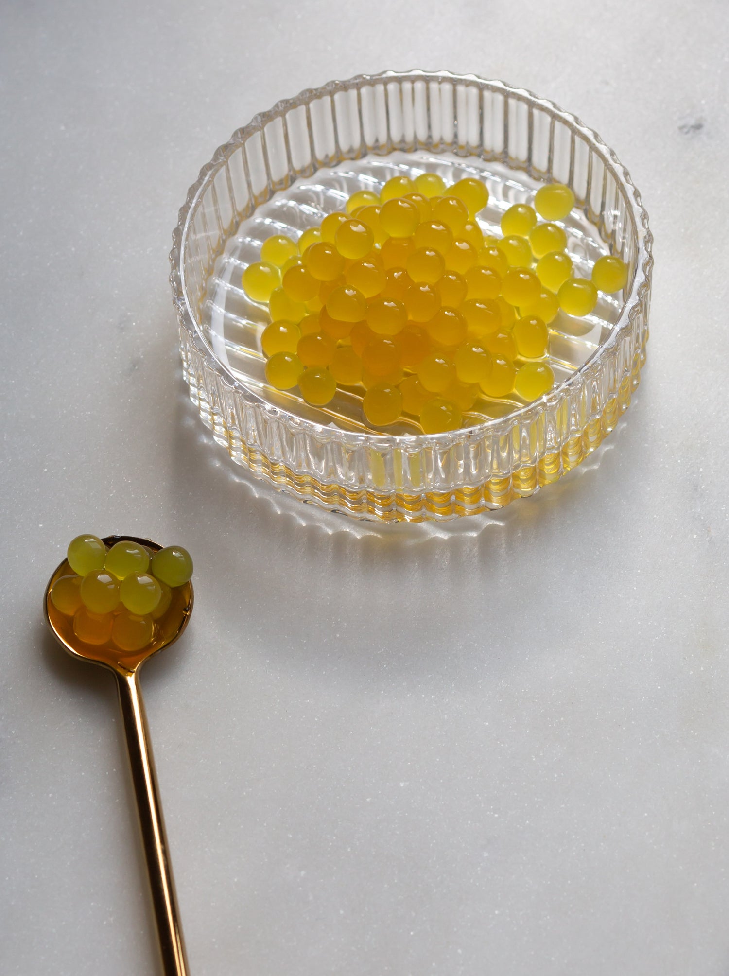 Elas oferecem infinitas possibilidades para adicionar um toque de diversão e cor às suas refeições e bebidas. Com elas, você pode criar receitas inovadoras para as ocasiões mais especiais, ou se presentear com uma pequena surpresa a qualquer momento. Eles são excelentes em coquetéis e smoothies, para acentuar o sabor de entradas, carnes e pratos de peixe, para temperar saladas ou para decorar sobremesas e sorvetes. Nossas esferas podem ser usadas como ingrediente e condimento.